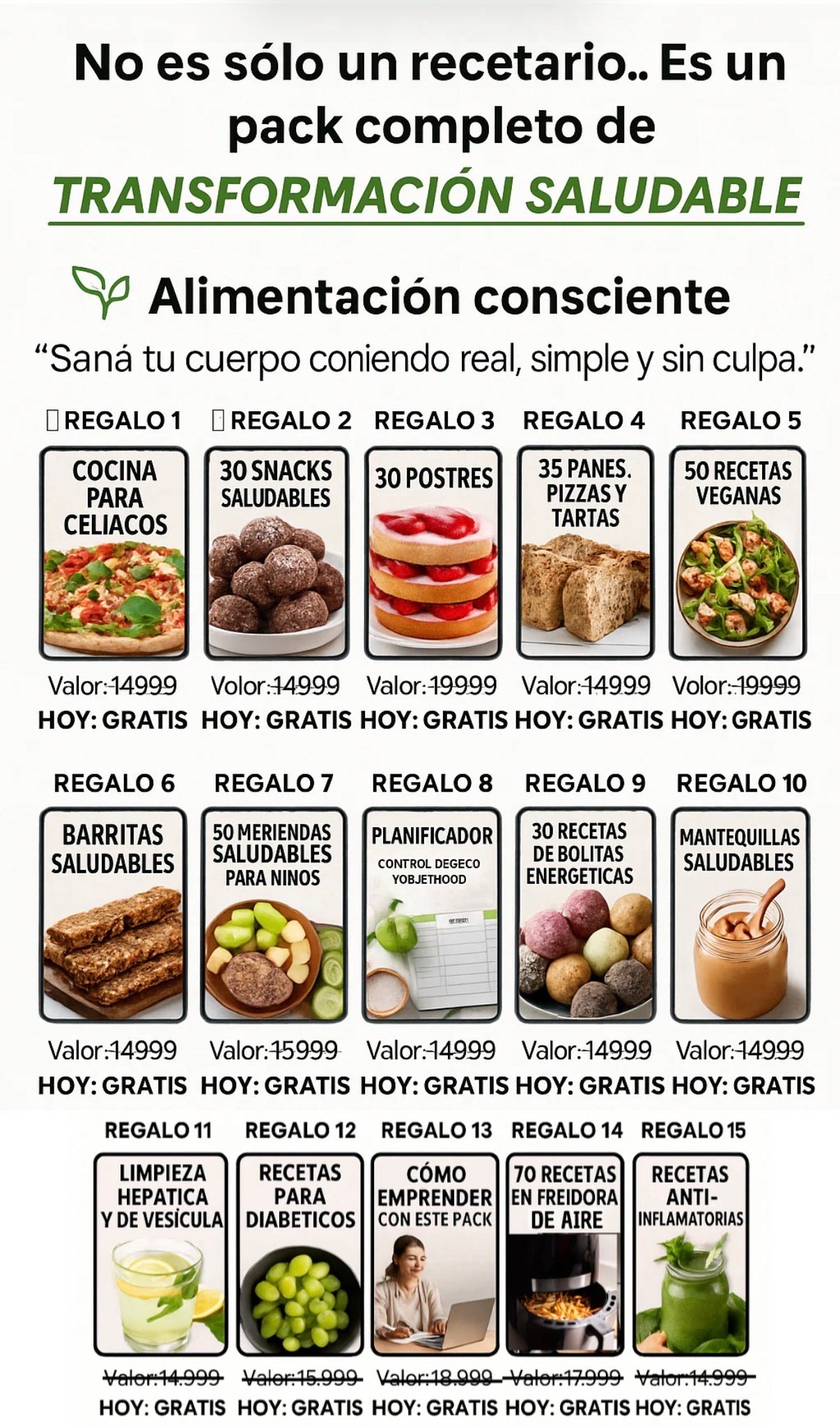 +1000 RECETAS SALUDABLES SIN GLUTEN SIN AZUCAR Y 15 BONOS DE REGALO🎁